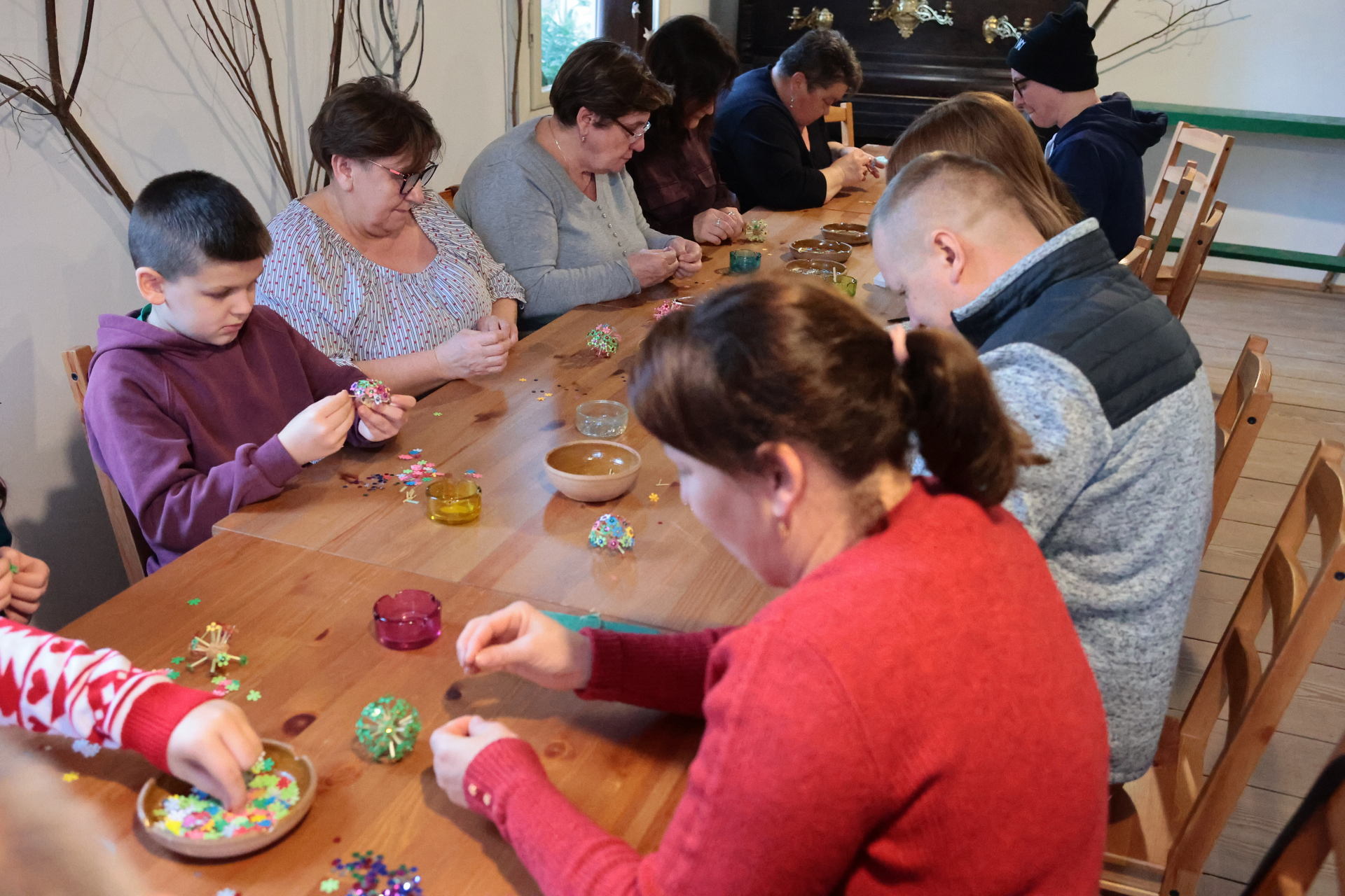 W niedzielę, 7 grudnia, w Muzeum Wsi Lubelskiej odbyły się warsztaty zatytułowane „Ozdoby choinkowe” i „Zapomniany świat światów”. Uczestnicy spotkania, poza praktyczną nauką tworzenia dawnych ozdób choinkowych, mogli również poznać historię, regionalne występowanie, a także symbolikę poszczególnych wzorów.