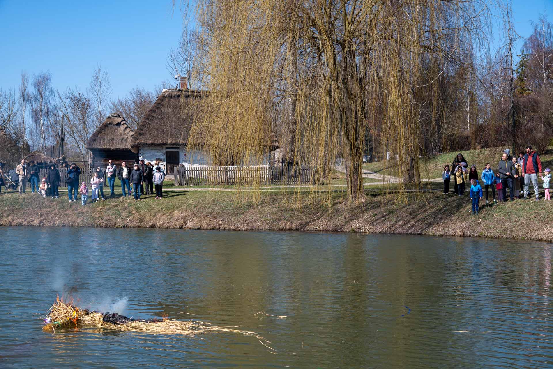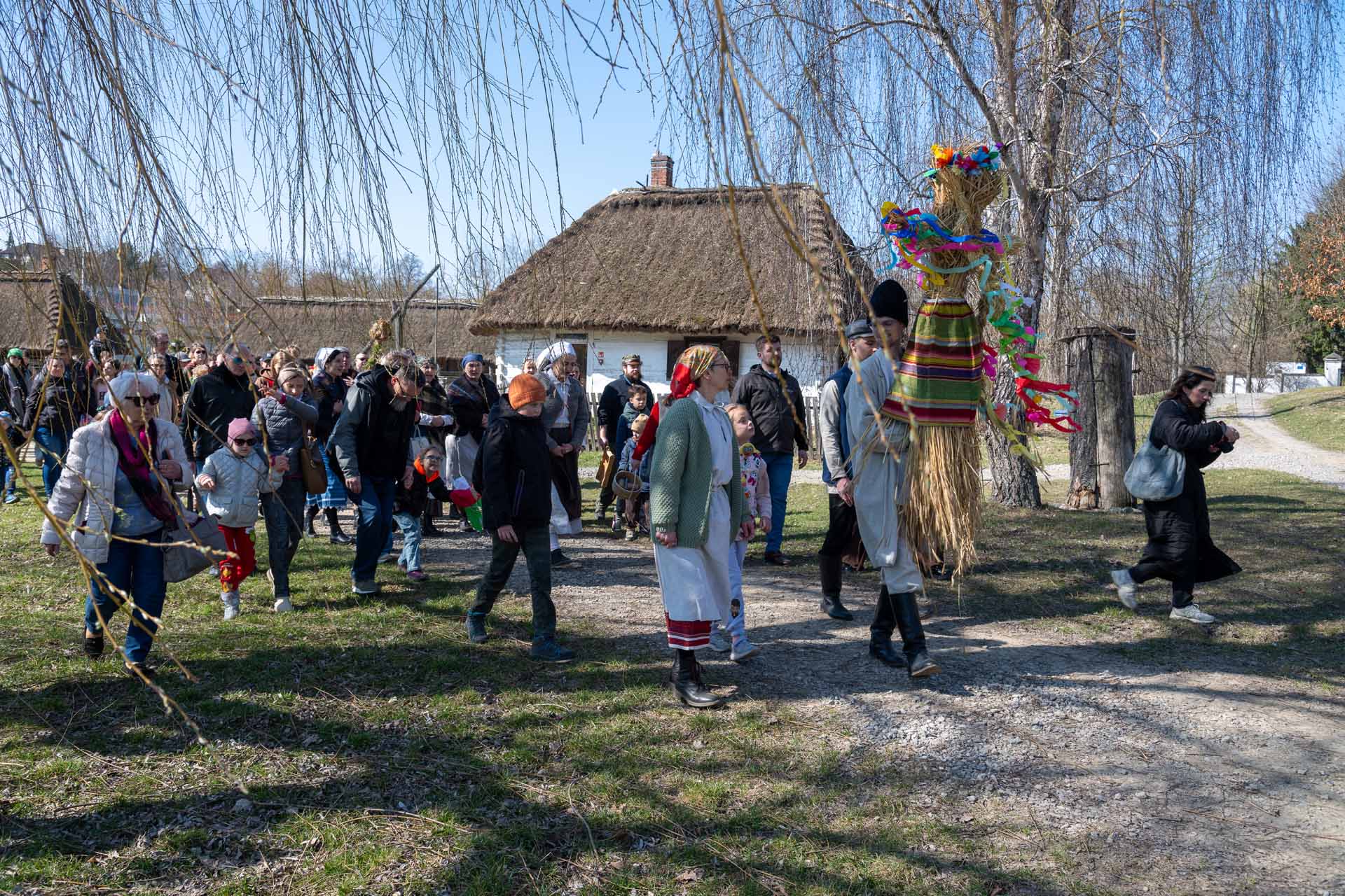Rozpoczęliśmy od przygotowania i udekorowania Marzanny – symbolu zimy – przy Zagrodzie z Karczmisk. Następnie, w uroczystym orszaku, została ona wyniesiona nad staw, gdzie ją podpalono i wrzucono do wody. Zwyczaj topienia marzanny wywodzi się z dawnych obrzędów starosłowiańskich. Choć nie jest ściśle związany z etnografią Lubelszczyzny, był niegdyś szeroko praktykowany na ziemiach polskich, zanim zaczął zanikać wraz z rozprzestrzenianiem się chrześcijaństwa.