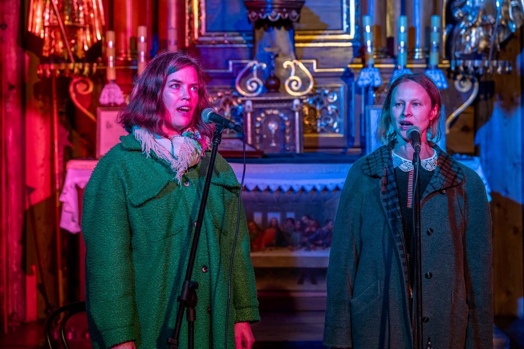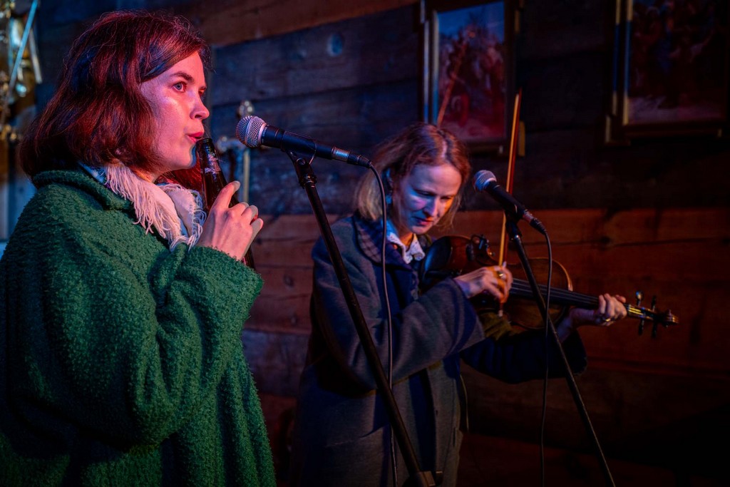 Duet Zaświatycze (Anna Jurkiewicz – śpiew, Paula Kinaszewska – śpiew, skrzypce) i Bartłomiej Woźniak – live electronics, bęben obręczowy, zaśpiewają melodie z bliższych i dalszych okolic wsi Kolano w gminie Jabłoń na Polesiu Lubelskim – m.in. ze wsi Kolano, Górki, Dołholiska, Jabłoń, Chmielów, Wyryki Wola, Dołhobrody. Śpiewaczkom towarzyszyć będzie Bartłomiej Woźniak – kompozytor teatralny i filmowy oraz reżyser dźwięku i producent muzyczny zafascynowany pojęciem przestrzeni w muzyce. Zaświatycze – podróż w zaświaty wąską szosą. O zmierzchu mijamy OSP, przywołujemy bliskie głosy i słowa z zamierzchłych czasów. A może te inne światy są w nas i można je wydobyć za pomocą pieśni, które zawisły między światem a zaświatem? Po naszomu, tak jak mówiły nasze babcie, w językach.