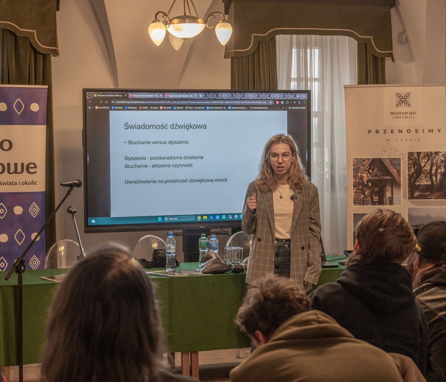 Warsztaty dźwiękowe skierowane zostały do studentów kierunków muzycznych i kulturoznawczych i miały za zadanie wprowadzić uczestników w sferę zagadnień związanych z audialnością. Warsztaty zaplanowane zrealizowano w dwóch obszarach. Pierwszy objął zagadnienia techniczne związane z procesami nagrywania i transmisji, zapisu i postprodukcji dźwięku. Drugi obszar objął sposoby konceptualizowania i odbierania dźwięku, określenie miejsca audialności w sektorze kultury, w tym w muzeach typu skansenowskiego. Uczestnicy warsztatów poznali podstawowe wymagania sprzętowe, dostępne programy do obróbki dźwięku oraz zdobyli praktykę w obszarze nagrań terenowych. Dwudniowe warsztaty zwieńczyły prezentacje prac uczestników.