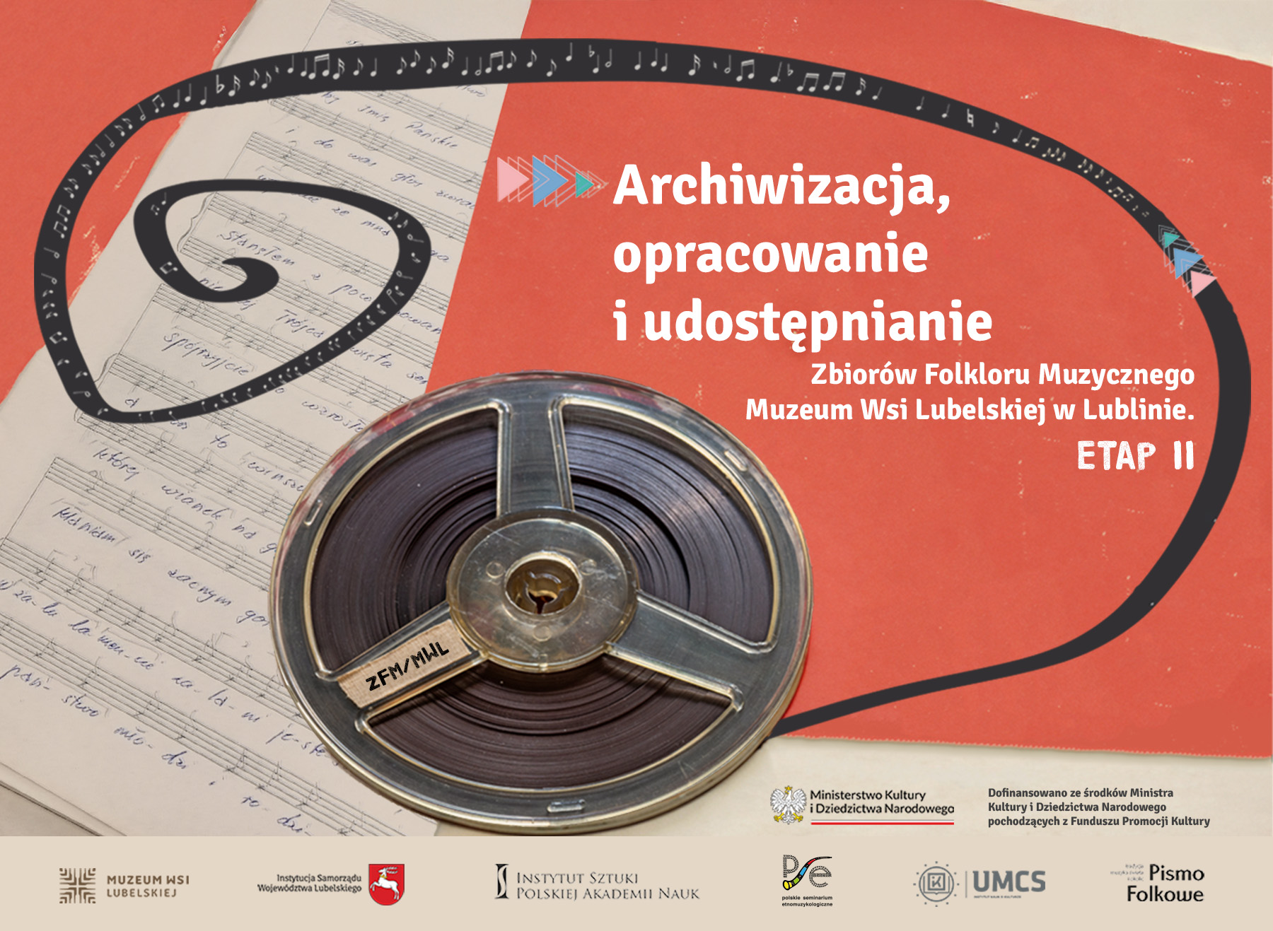Projekt: Archiwizacja, opracowanie i udostępnianie Zbiorów Folkloru Muzycznego Muzeum Wsi Lubelskiej w Lublinie. Etap II dofinansowano ze środków Ministra Kultury i Dziedzictwa Narodowego pochodzących z Funduszu Promocji Kultury.