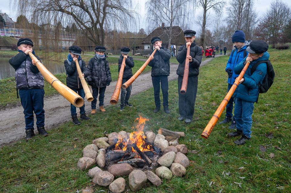 Na rozpoczęcie, po muzealnym Powiślu rozległy się dźwięki przegrywających do siebie – Andrzeja Klejzerowicza i Teodora Niemyjskiego, mistrzów gry na ligawce podlaskiej, którym sekundowali wszyscy uczestnicy wydarzenia, w tym delegaci Muzeum Rolnictwa im. Ks. Krzysztofa Kluka w Ciechanowcu. To tam, od 1974 roku, odbywa się największy w Polsce konkurs gry na ligawkach i innych instrumentach pasterskich. Podczas lubelskiego Przeglądu zaprezentowali się także uczniowie Publicznej Szkoły Podstawowej im. Kardynała Wyszyńskiego w Gocławiu ukazując pieczołowicie pielęgnowaną tradycję gry na ligawkach w Kalonce (gm. Pilawa, pow. Garwolin). Swoją obecnością wsparły grających uczniów członkinie KGW „Kaleń”.